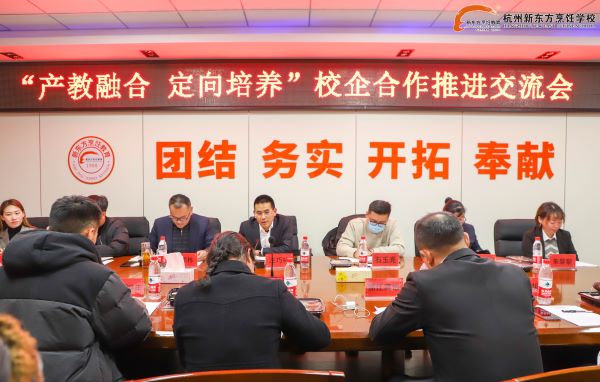 12月20日,杭州新東方職業(yè)學(xué)校"產(chǎn)教融合,定向培養(yǎng)"校企合作交流會(huì)勝利召開(kāi)!我校領(lǐng)導(dǎo)及杭州跨湖樓餐飲有限公司 、浙江賓館有限責(zé)任公司 、杭州知味觀味莊餐飲有限公司 、杭州樓外樓實(shí)業(yè)集團(tuán)股份有限公司 、浙江隆聚餐飲集團(tuán)股份有限公司、 上海布朗石餐飲管理有限公司等企業(yè)代表參加會(huì)議。本次會(huì)議旨在推動(dòng)職業(yè)教育與產(chǎn)業(yè)的深度融合,促進(jìn)人才培養(yǎng)質(zhì)量的提升,實(shí)現(xiàn)教育和產(chǎn)業(yè)統(tǒng)籌融合、良性互動(dòng)。