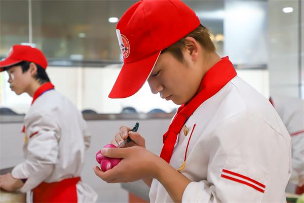 你畫一道風(fēng)景果醬畫,我畫一道寫意果醬畫...盤子與指尖的溫度仿佛融在一起,每一抹顏色都是他對藝術(shù)追求的展現(xiàn)。果醬筆在我校烹飪學(xué)子的一雙雙巧手的施力下,構(gòu)造著各式美麗的畫面,鮮艷的果醬猶如被賦予生命般在碟盤上綻放。