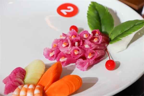 比賽開始,學(xué)員們凝眉聚神,胸有成竹。他們的手,有毫厘千鈞之力;他們的眼,有秋毫不放之工。刀刃在各種食材間,時(shí)而輕滑,時(shí)而勾勒,一片片食材在如玉如脂的盤中落下,形成一幅渾然天成的畫卷。