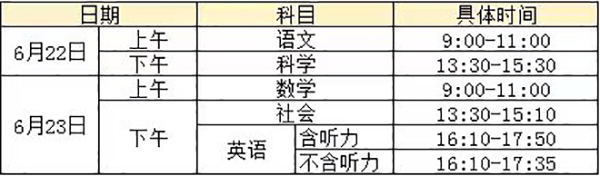 以下是浙江省中考時間: