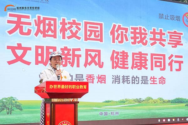 12月9日,杭州新東方烹飪學(xué)校全體師生齊聚操場,共同參與了“無煙校園,你我共享,文明新風(fēng),健康同行”禁煙啟動儀式。