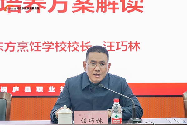 緊接著,杭州新東方烹飪學(xué)校的汪巧林老師詳細(xì)解讀了《桐廬縣職業(yè)技術(shù)學(xué)校與杭州新東方烹飪學(xué)校合作方案》。該方案明確了雙方的合作目標(biāo)、合作內(nèi)容、合作方式以及預(yù)期效果,旨在通過資源共享、優(yōu)勢(shì)互補(bǔ),共同培養(yǎng)更多具有創(chuàng)新精神和實(shí)踐能力的烹飪?nèi)瞬拧?/p>