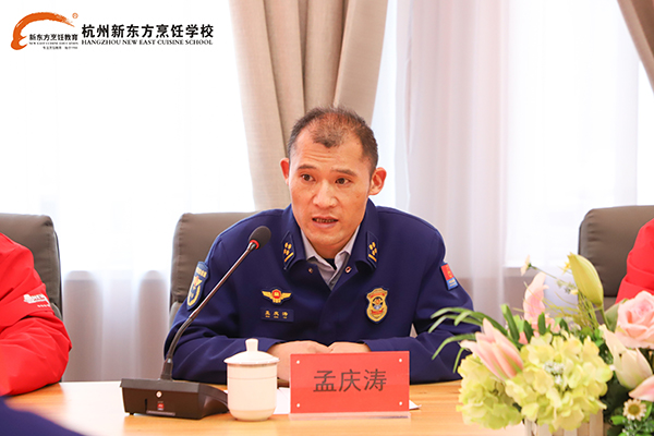 典禮伊始,杭州新東方烹飪學(xué)校校區(qū)負(fù)責(zé)人陳小進(jìn)主任首先致辭。他強(qiáng)調(diào),此次培訓(xùn)聚焦實(shí)戰(zhàn)需求,結(jié)合消防救援隊(duì)伍任務(wù)特點(diǎn),精心設(shè)計(jì)了涵蓋熱菜烹飪、面點(diǎn)制作、刀工技法、勺工技法等核心課程,旨在通過(guò)“理論+實(shí)操”雙軌教學(xué),幫助學(xué)員系統(tǒng)掌握營(yíng)養(yǎng)搭配、菜品創(chuàng)新及應(yīng)急供餐能力。陳小進(jìn)表示,學(xué)校將全力調(diào)配專(zhuān)業(yè)師資,確保培訓(xùn)成效。