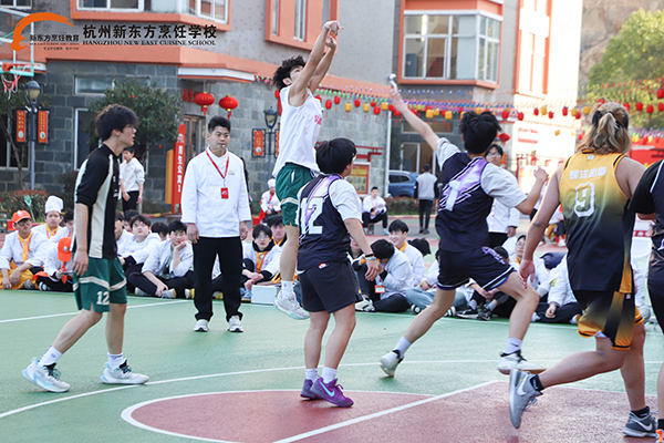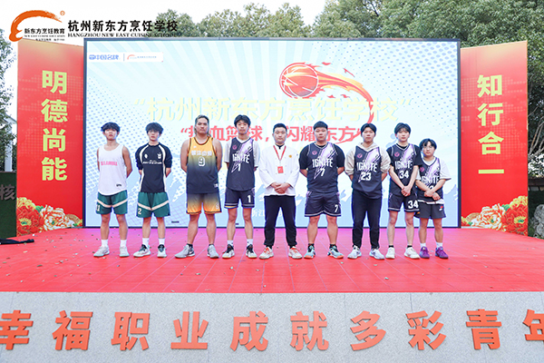 在杭州新東方烹飪學校的校園里,不只有鍋碗瓢盆的碰撞奏鳴,更有籃球撞擊地面的激昂鼓點與少年們熱血澎湃的吶喊。