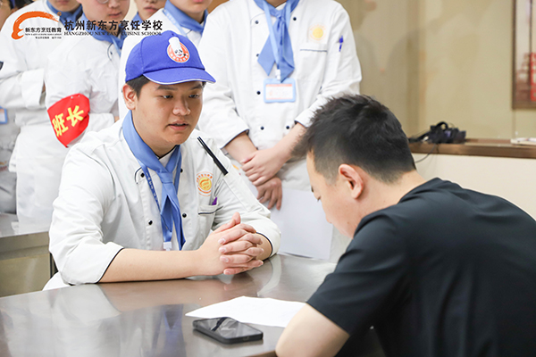 活動(dòng)伊始,杭州新東方烹飪學(xué)子邵杰作為特邀嘉賓,和學(xué)弟學(xué)妹們分享了自己的成長(zhǎng)經(jīng)歷。邵杰從杭州新東方烹飪學(xué)校畢業(yè)后,便加入了玉十三,從基礎(chǔ)的切配工作做起。憑借扎實(shí)的技能和不懈的努力,他在短短三個(gè)月內(nèi)便脫穎而出,成功晉升為上灶廚師。