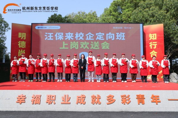 近日,杭州新東方烹飪學(xué)校的操場(chǎng)上洋溢著一片喜慶與溫馨的氛圍,一場(chǎng)特別的歡送會(huì)——“汪保來(lái)校企定向班畢業(yè)上崗歡送會(huì)”在這里隆重舉行。
