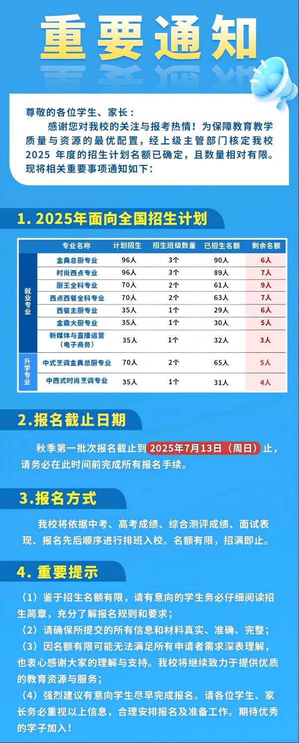 速搶!杭州新東方烹飪學(xué)校2025年秋季第一批次報(bào)名即將截止