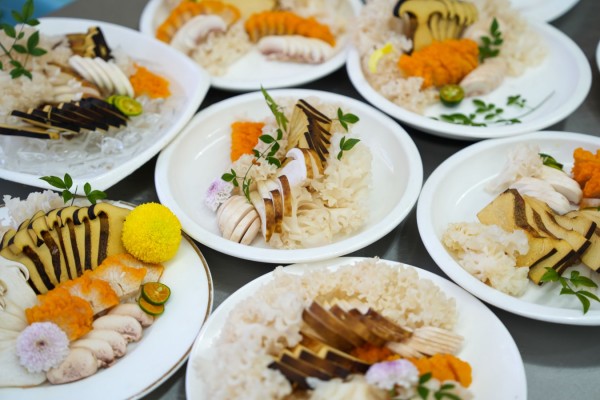 林總監(jiān)的現(xiàn)場操作教學更是將理論轉(zhuǎn)化為實踐,他一邊操作一邊講解,學子們在他的指導下,嘗試打造兼具味覺與視覺沖擊力的刺身姿造作品。