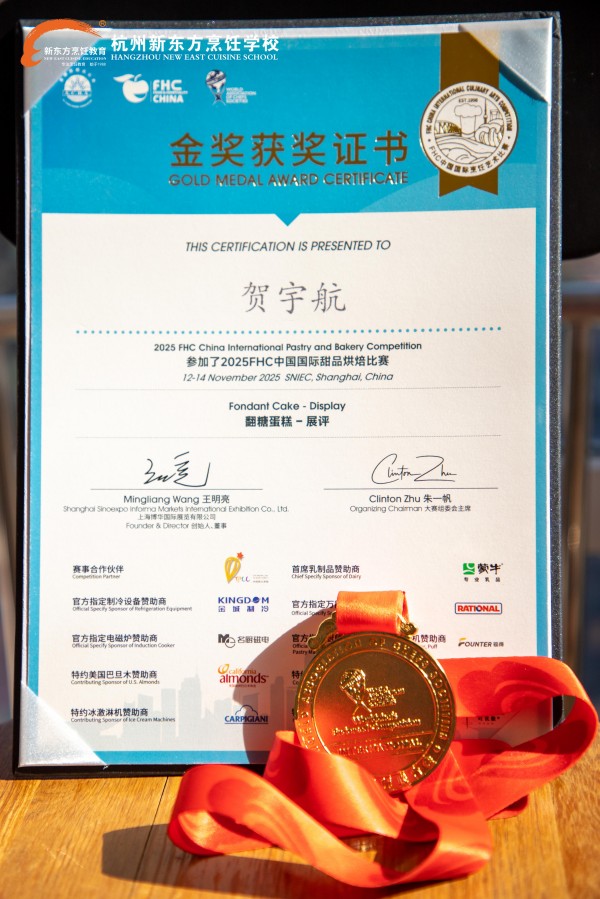 此次賀宇航老師斬獲國際賽事金獎,再次印證了杭州新東方烹飪學(xué)校雄厚的教學(xué)實力與師資水平,也為在校學(xué)子樹立了“技能成才、匠心筑夢”的榜樣。