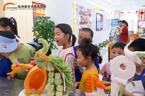 在杭州新東方學(xué)子的巧手下,原本平凡無(wú)奇的蘿卜,仿佛被賦予了生命,化身為栩栩如生的鳥獸花卉,引得孩子們陣陣歡呼。