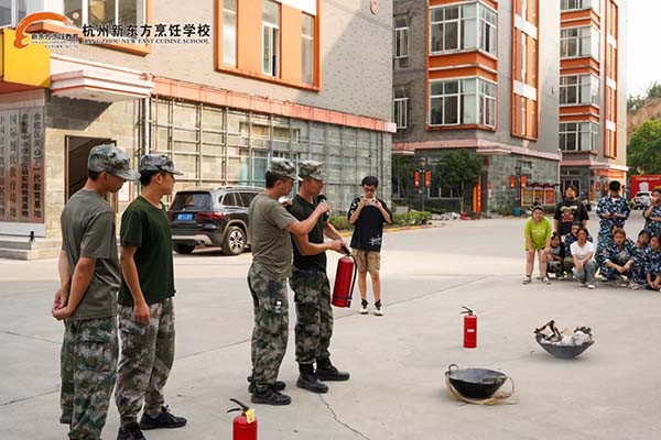 杭州新東方烹飪學(xué)校為了增強(qiáng)新生的防火安全意識(shí),提高火災(zāi)應(yīng)急處理能力,特別舉辦了消防演練活動(dòng)。